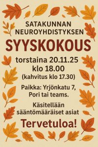 Syyskokous 20.11.25 satakunnan Neuroyhdistys ry