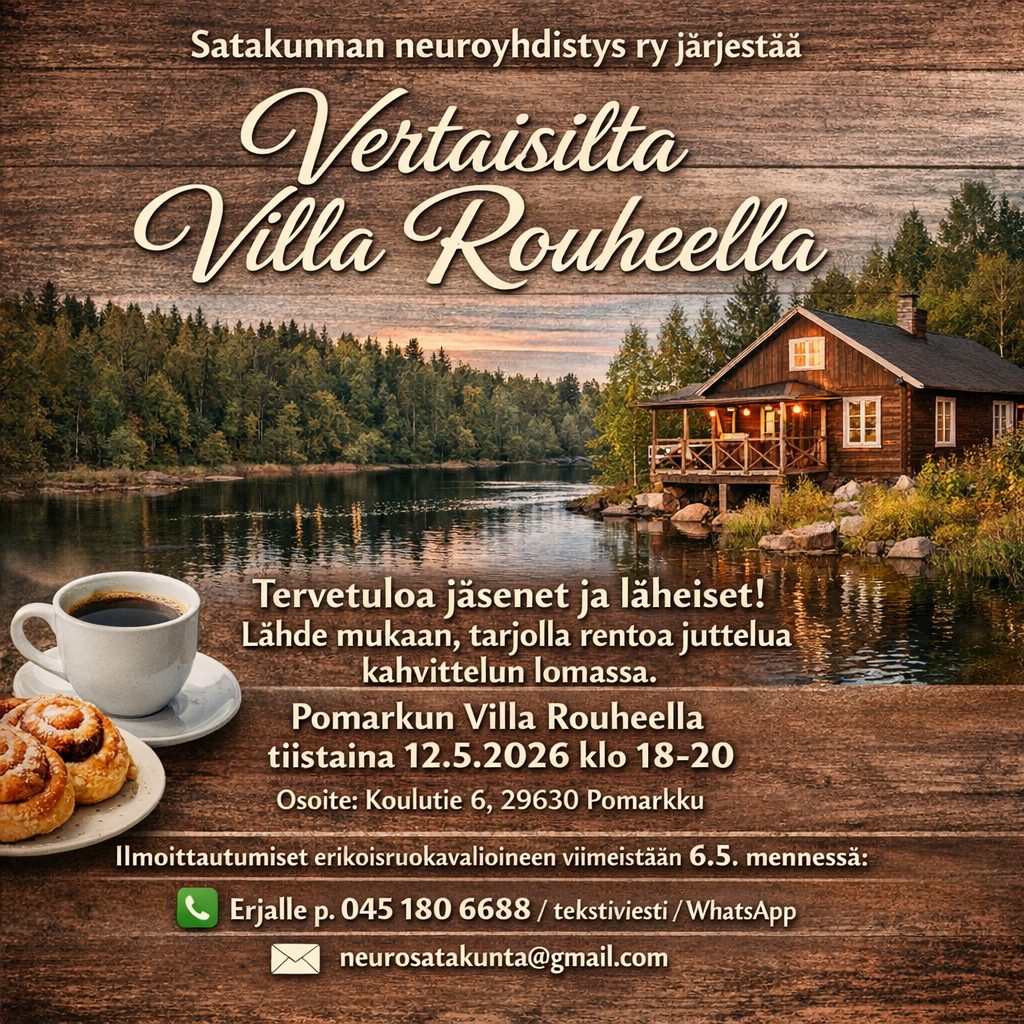 - Ilmoittautuminen: 6.10.25 mennessä neurosatakunta@gmail.com. Kerro myös erikoisruokavaliosi tarjoilun takia.